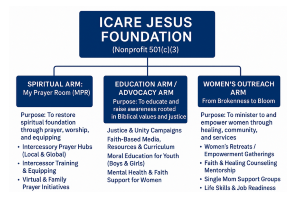 ICARE JESUS FOUNDATION, INC is a faith-based nonprofit dedicated to advancing Christian evangelism through love, justice, and service. We provide spiritual encouragement, outreach, and practical support to orphans, widows, veterans, and people in need, meeting them where they are spiritually, physically, and emotionally. Our purpose is to spread the Gospel of Christ through evangelism in action, offering healing and restoration to individuals and communities. Our vision is to see God’s Kingdom impact live worldwide as we serve as the hands and feet of Jesus on earth.